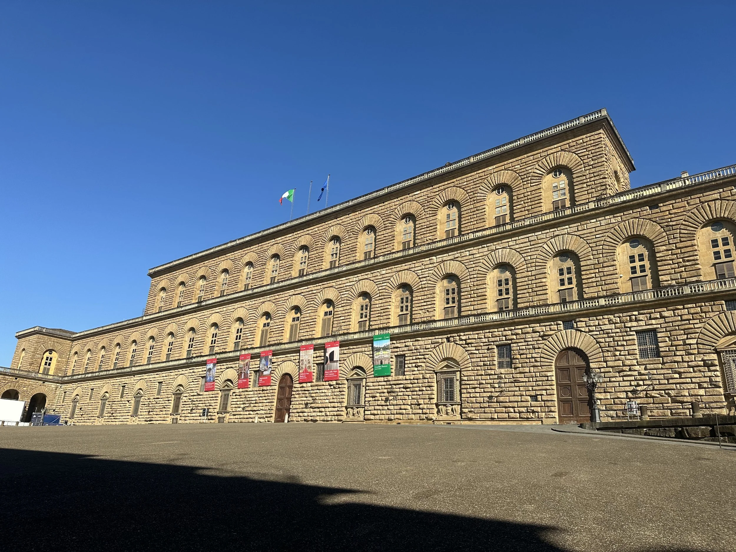 In the opening of the episode, we catch a glimpse of Piazza de’ Pitti, which I happened upon with Connie and Katie my first day in the city. It’s dominated by the formiddable Palazzo Pitti, a vast Renaissance palace that houses multiple museums, including the Palatine Gallery, the Gallery of Modern Art, and the Museum of Costume and Fashion. I didn’t get to any of these, but it remained quite the feat from the outside.