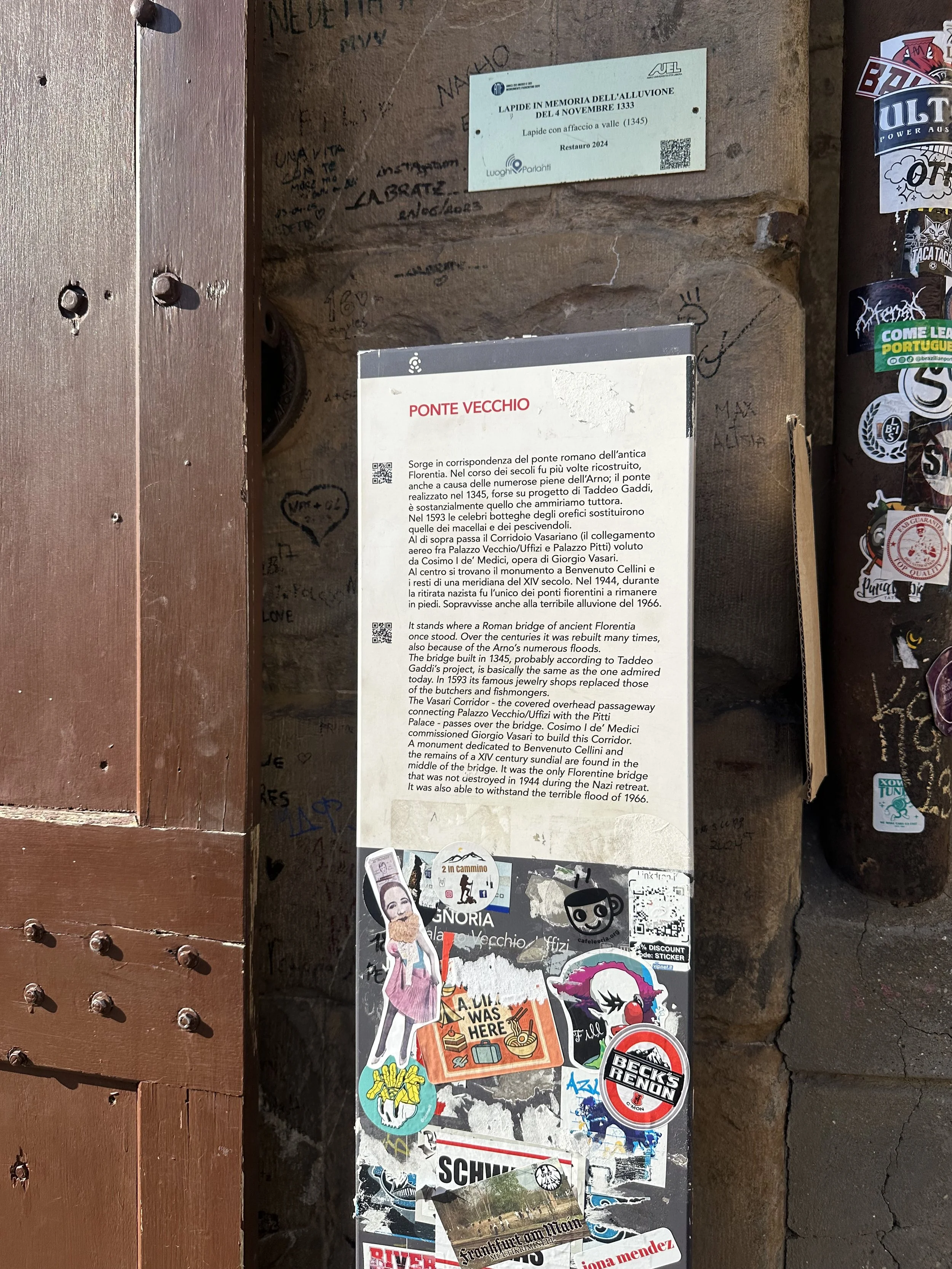 From the piazza, Harriet and Massimo must cross the Ponte Vecchio, the only bridge left intact during the occupation. I traversed the bridge more than a few times during my short stay in Florence, and each time, there were new shops to explore, more people to watch, and more bustle and energy than the time before. The Ponte Vecchio was one of my favorite landmarks in all of Italy. The banner for this page is taken there.